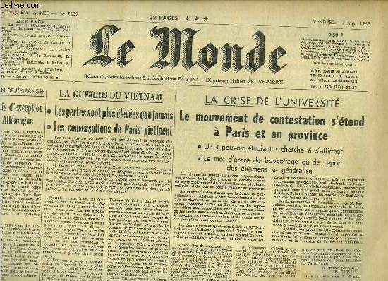 Trên trang nhất số ra ngày 6 tháng 5 năm 1968, nhật báo Le Monde (Pháp) dành vị trí nổi bật để đưa tin về chiến tranh Việt Nam với dòng tít: “Les pertes sont plus élevées que jamais” (Tổn thất cao chưa từng có) và “Les conversations de Paris piétinent” (Các cuộc đàm phán tại Paris đang giậm chân tại chỗ). Hình ảnh này không chỉ cho thấy mức độ khốc liệt của cuộc chiến, mà còn phản ánh sự quan tâm và thái độ phê phán ngày càng rõ nét của báo chí châu Âu đối với chính sách quân sự của Mỹ tại Việt Nam.