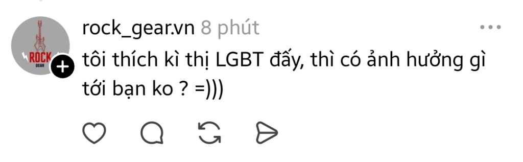 Cuối tháng 8 vừa qua, trên nền tảng mạng xã hội Thread, một cuộc tranh luận đã bùng nổ sau khi chủ Cửa hàng nhạc cụ cũ Rock Gear (ông Nguyễn Đặng Việt Minh) đã đăng tải bình luận mang tính kỳ thị cộng đồng LGBTQ+ kèm theo nhiều ngôn từ xúc phạm. Phát ngôn này đã vấp phải làn sóng chỉ trích mạnh mẽ từ dư luận, song chủ cửa hàng Rock Gear vẫn tiếp tục có thái độ thách thức và công kích cá nhân với những lời lẽ mang tính xúc phạm.